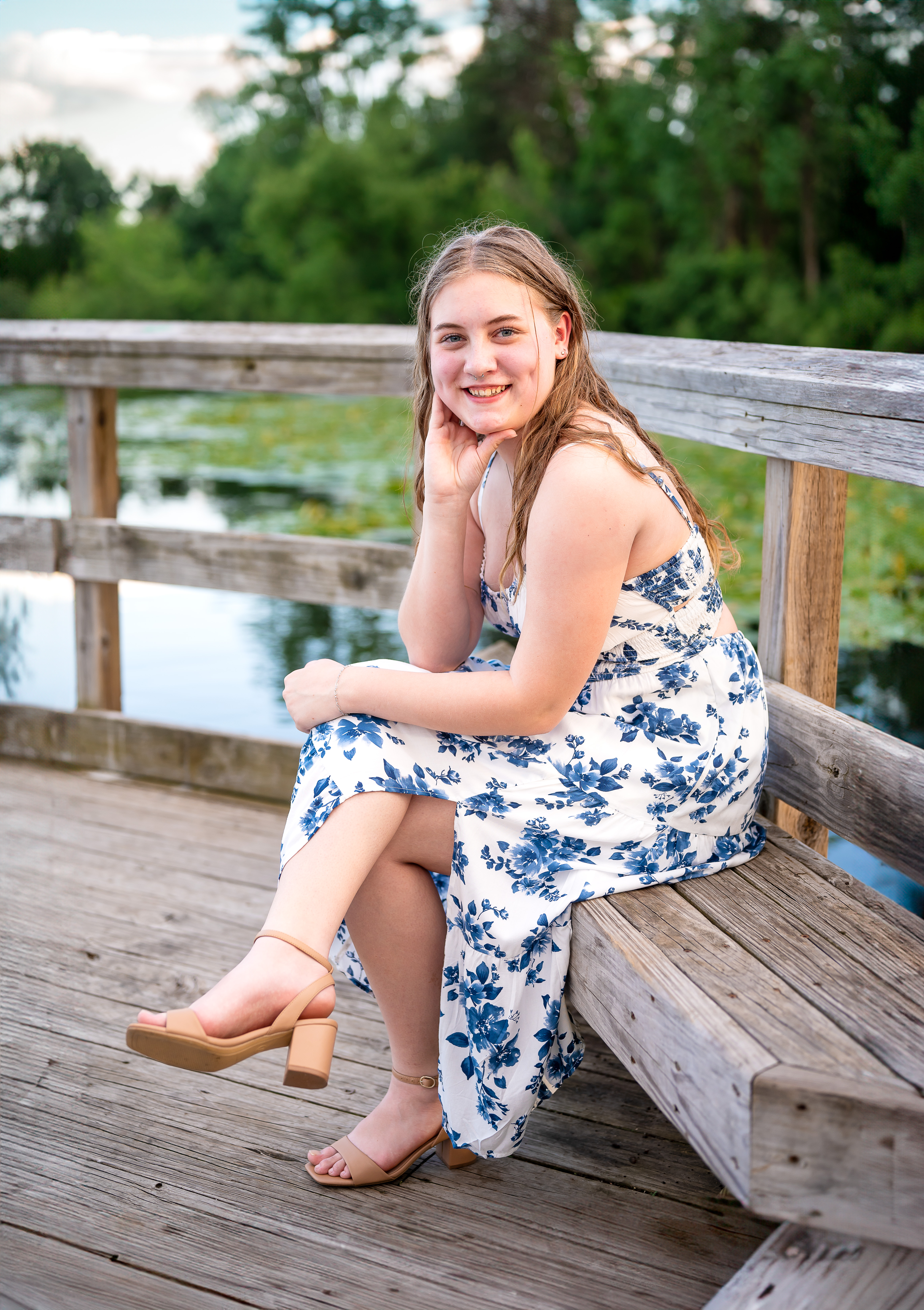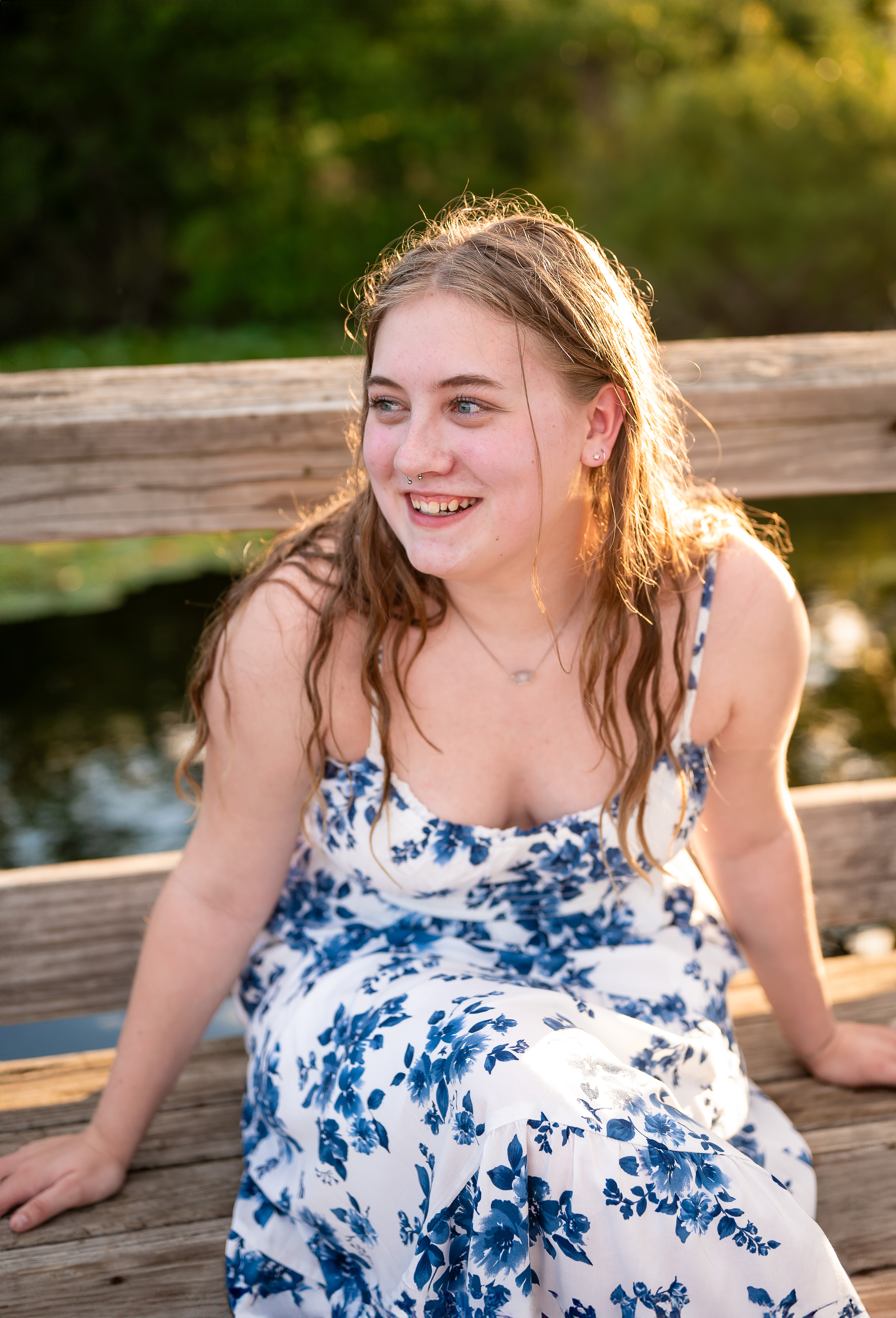 CeCe arrived dressed for summer in a stylish, flowy sundress adorned with vibrant colors that echoed the lush greenery around her. The lightweight fabric danced with the breeze, perfectly complementing the carefree spirit of summer. She paired the dress with cute sandals and delicate accessories, striking the right balance between casual and chic. I always encourage seniors to choose outfits that make them feel comfortable and confident, and Brook’s choice was spot on! I also loved the 90’s vibe she brought with her other outfits, including pink colored Chucks!