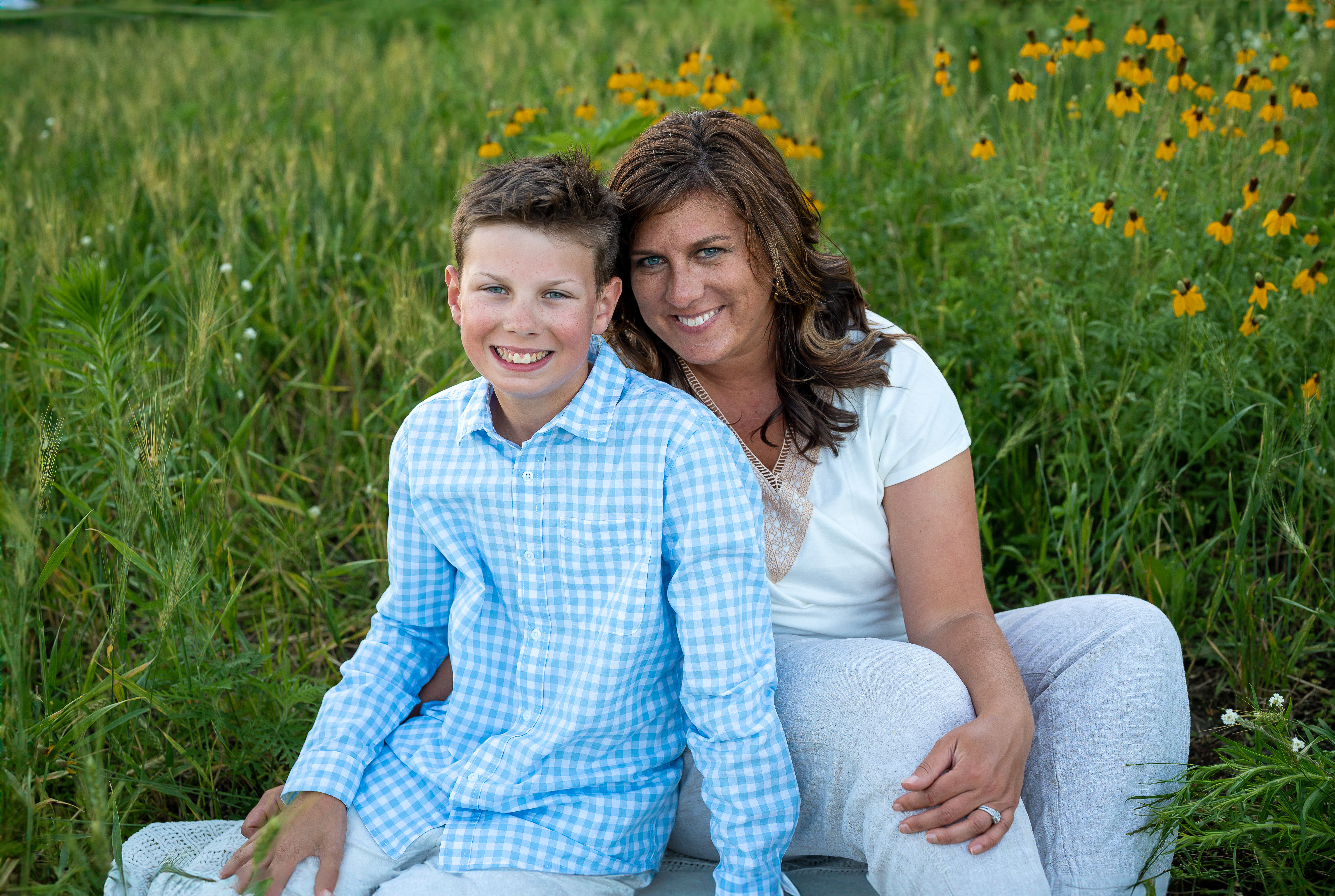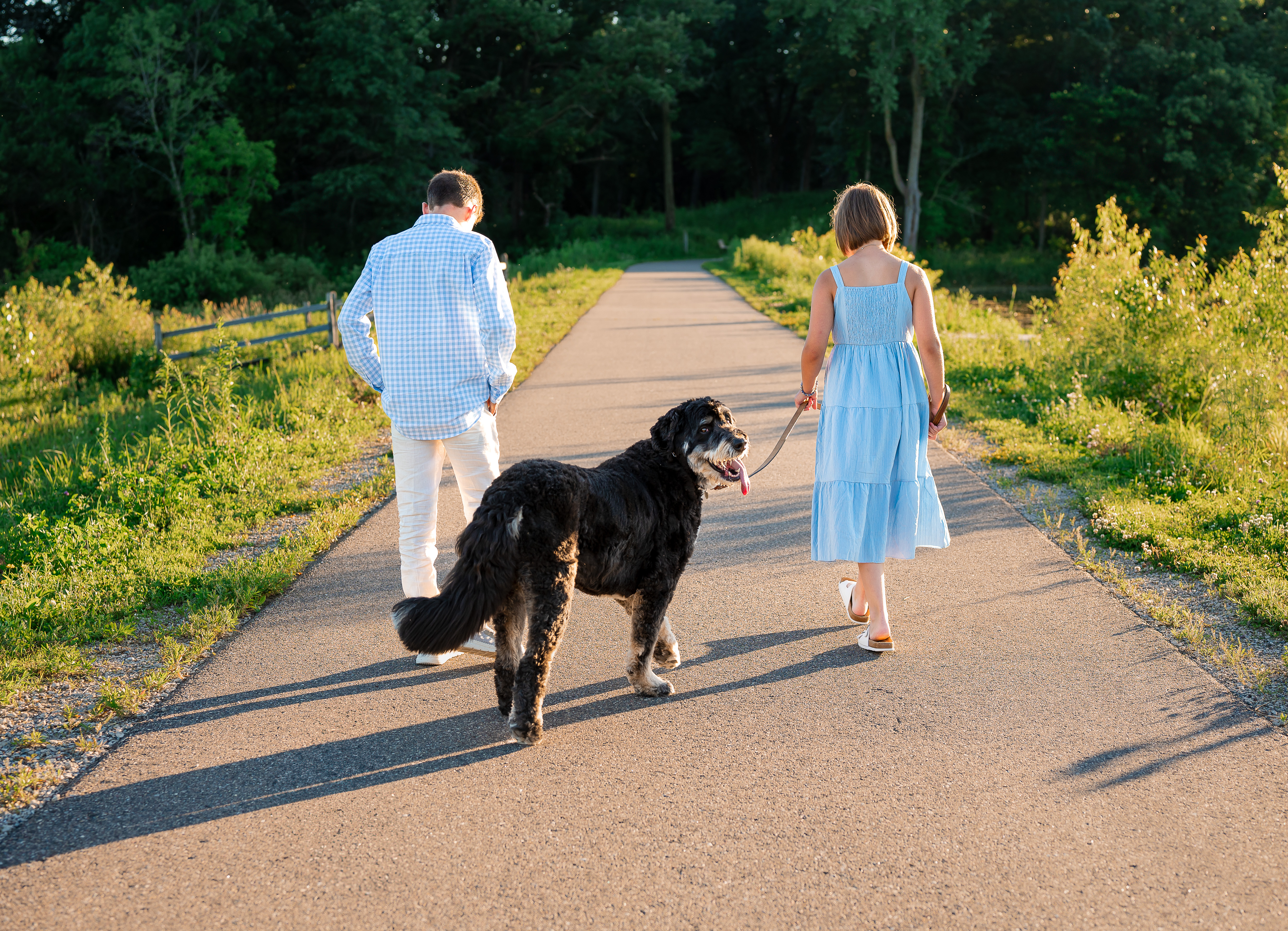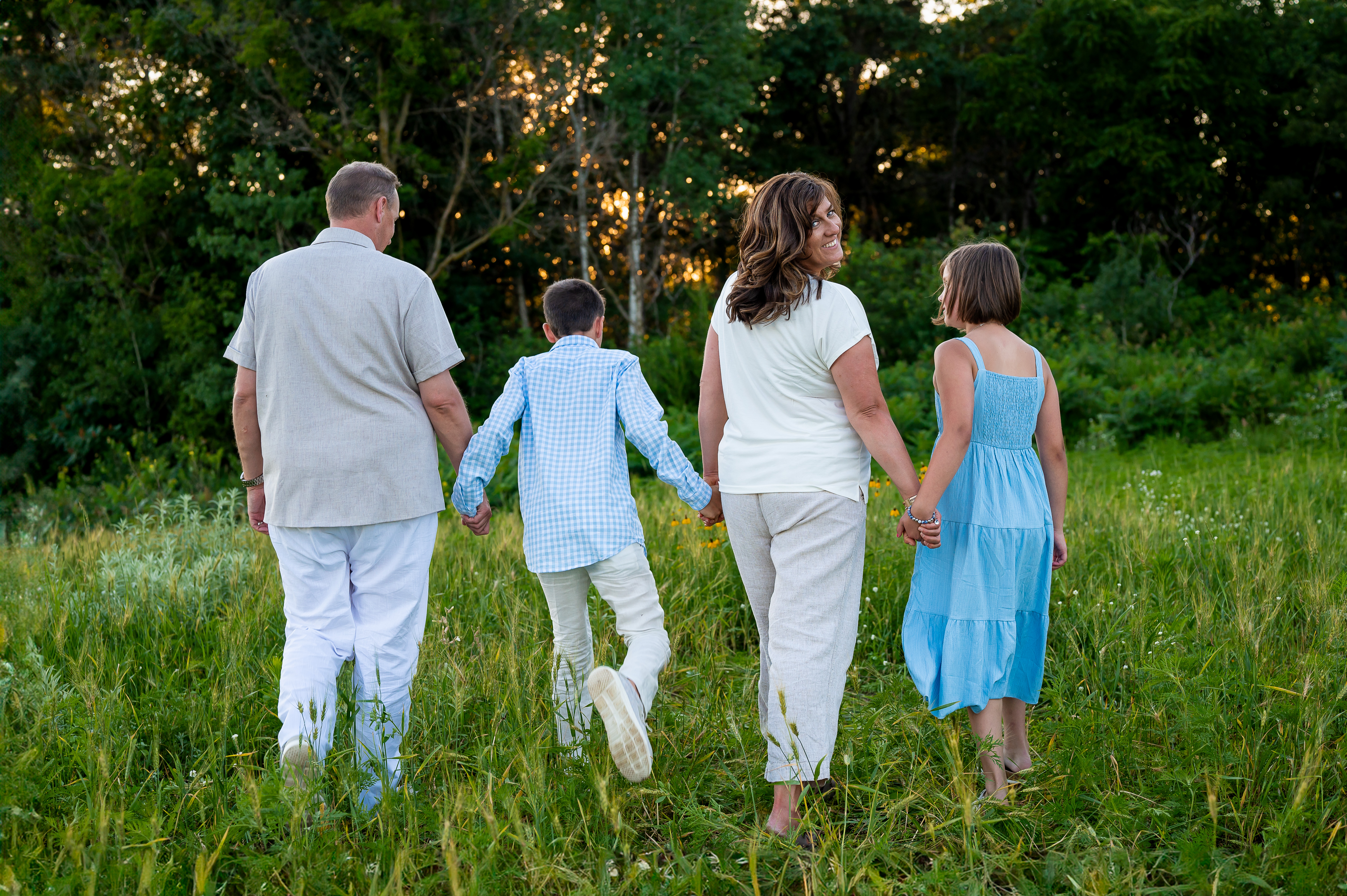 Family photo sessions are a wonderful way to capture the joy, love, and unique personalities of each family member—and when a furry friend is part of the equation, the experience becomes even more special! I recently had the pleasure of photographing the Smith family during their summer session at Whitetail Woods in Farmington, Minnesota, alongside their adorable Bernedoodle, Sophie. Together, they created beautiful memories that will last a lifetime. Whitetail Woods is one of the most picturesque locations in the area, featuring scenic trails, lush greenery, and tranquil ponds that showcase the beauty of nature in summer. As we arrived at the park, the sun was shining, and the vibrant wildflowers were in full bloom, providing the ideal backdrop for the Smith family’s photos. The warm weather and inviting atmosphere made it the perfect day for capturing moments together. Well…..except the bugs.