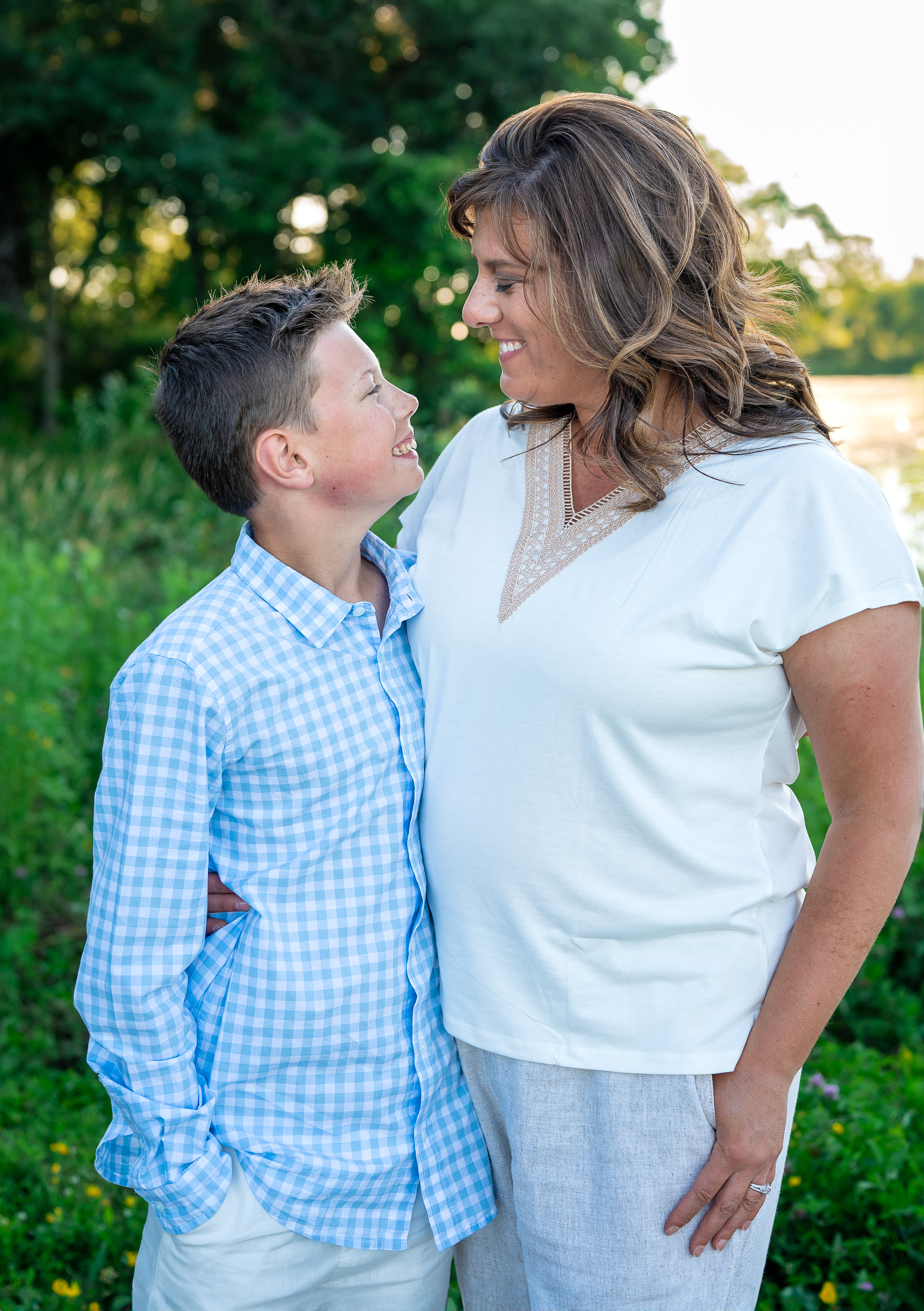 We had initially set their family session towards the end of June. That week, if y’all remember, it rained. ALL WEEK. So we pushed it back a week. The day we were to meet, it threatened to rain. Copy and paste, we moved it. Meredith contacted me late one night before the day of their session to see if I was available to do it on that Sunday because it looked like it was going to rain again…and I didn’t take any chances with the weather and we met up 2 days before we were set to. I’m glad we did. It was a gorgeous night, again, except for the bugs.