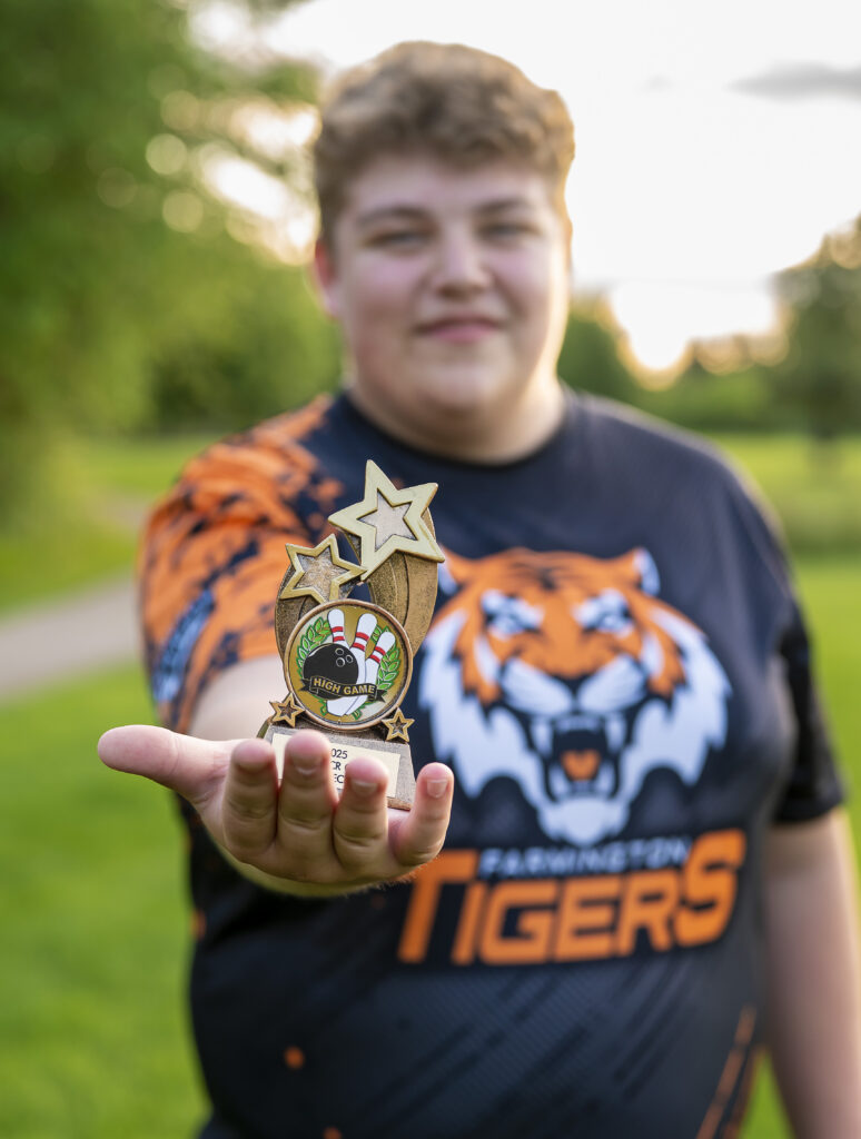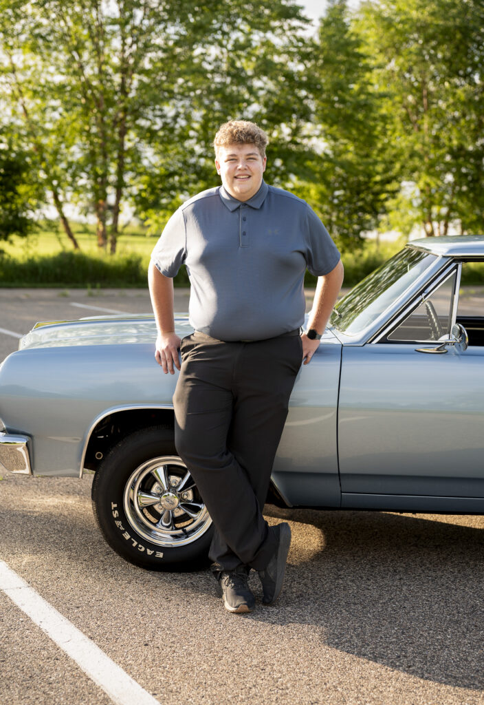We kicked things off with some classic family flair—his grandparents’ vintage Chevelle and his pup, Kaiser, who totally stole the show (and was such a good boy 🐾)! Mason also brought along a tiny trophy from a perfect game he bowled with his team, giving us the perfect chance to capture him in his bowling gear and celebrate this awesome accomplishment.