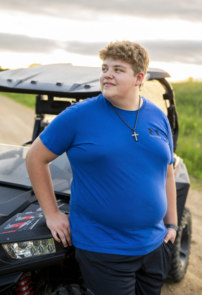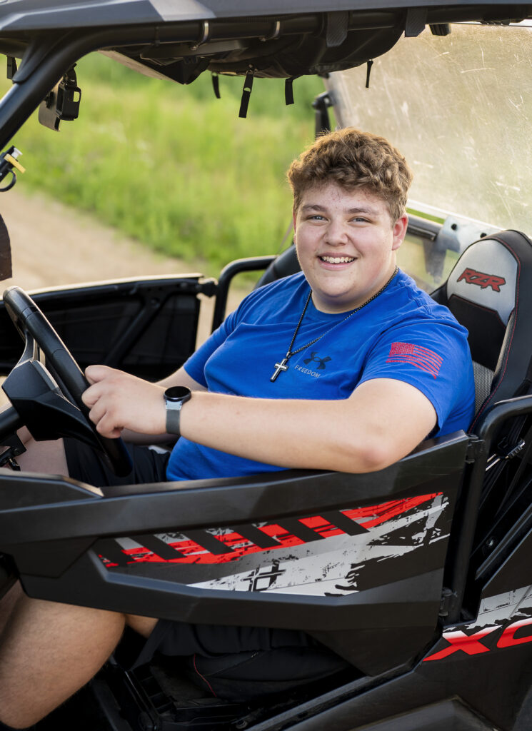 After snapping a few more traditional shots at Whitetail, we headed to a nearby dirt road to get some rugged, adventurous shots with his other grandpa’s RZR. The mix of classic, sporty, and outdoorsy elements made for such a dynamic session—and Mason rocked every single shot.