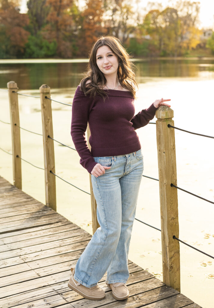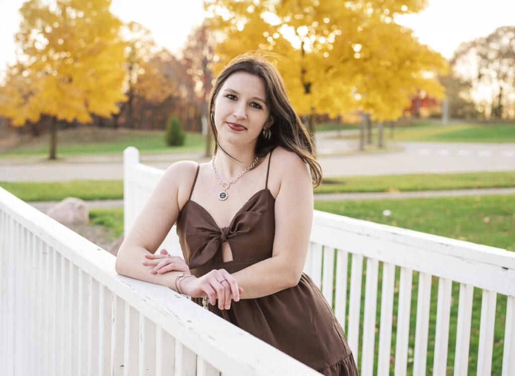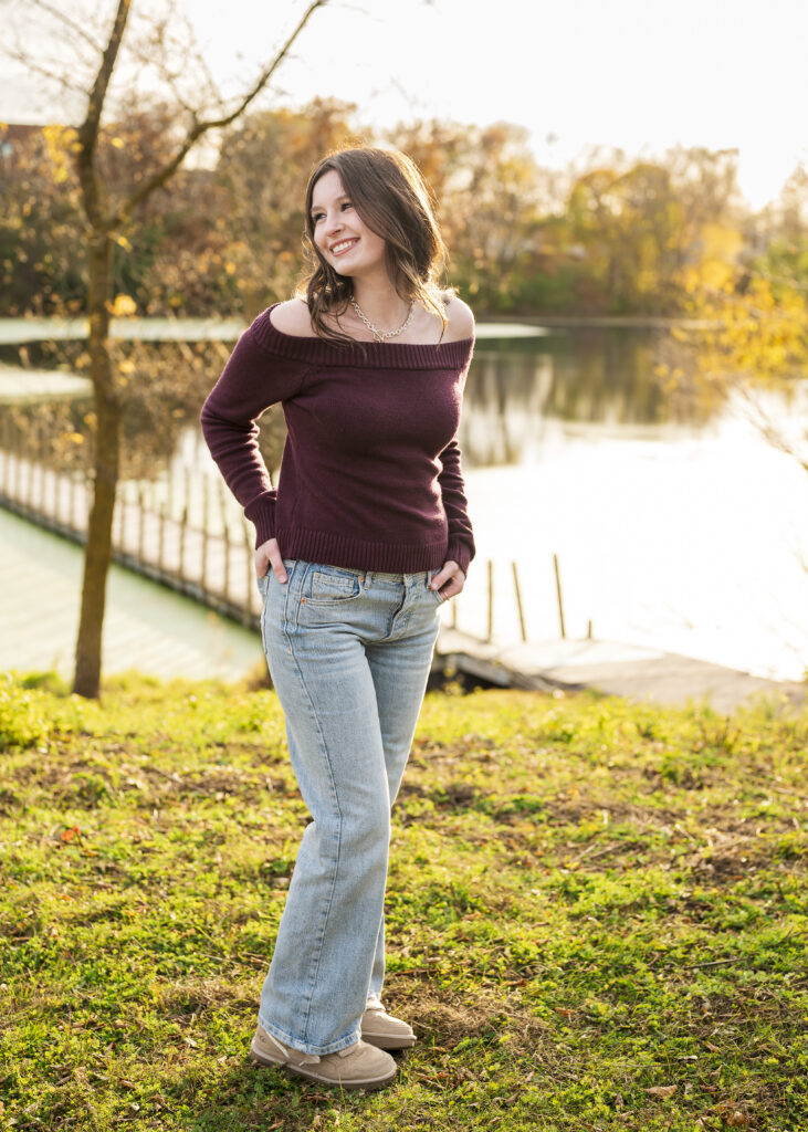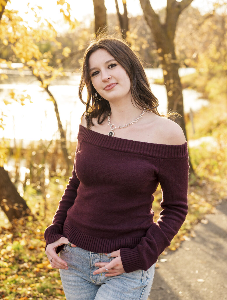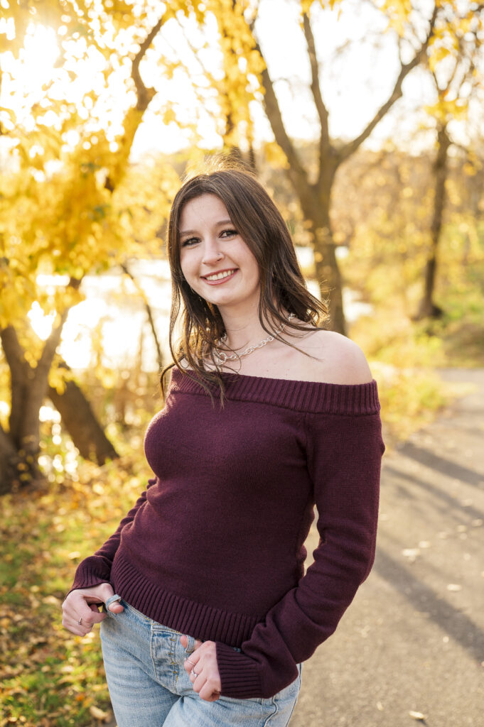 I am so thankful the fall colors decided to hang on a little longer, because they absolutely showed off for Paige’s senior session at Lakefront Park. From the moment we arrived, it was clear this evening was going to be something special. The trees were glowing with rich autumn color, the air was crisp but comfortable, and Paige brought the most calm, easygoing energy to her session.