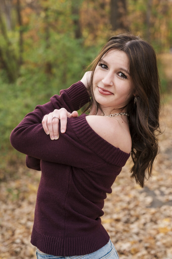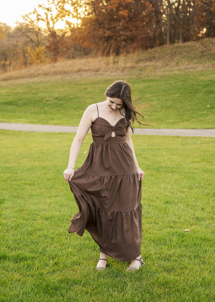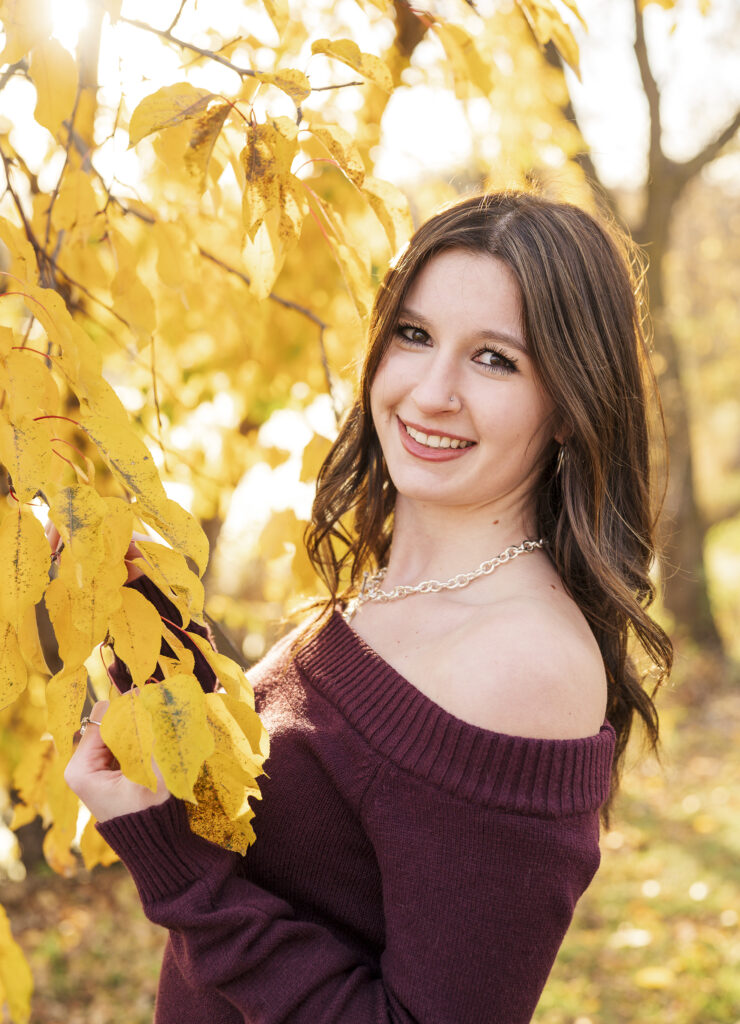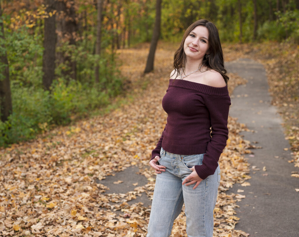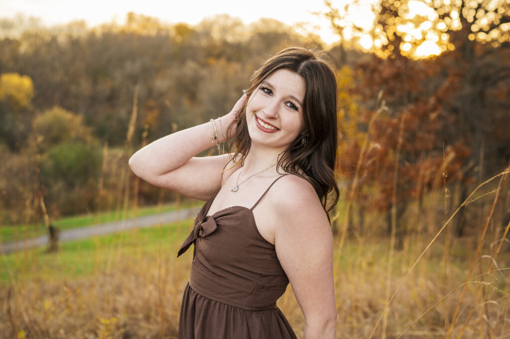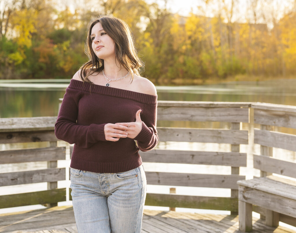 I am so thankful the fall colors decided to hang on a little longer, because they absolutely showed off for Paige’s senior session at Lakefront Park. From the moment we arrived, it was clear this evening was going to be something special. The trees were glowing with rich autumn color, the air was crisp but comfortable, and Paige brought the most calm, easygoing energy to her session.